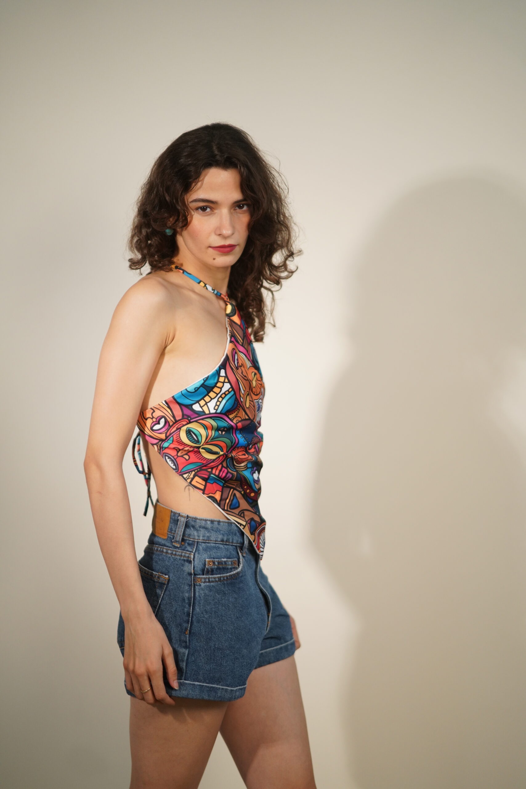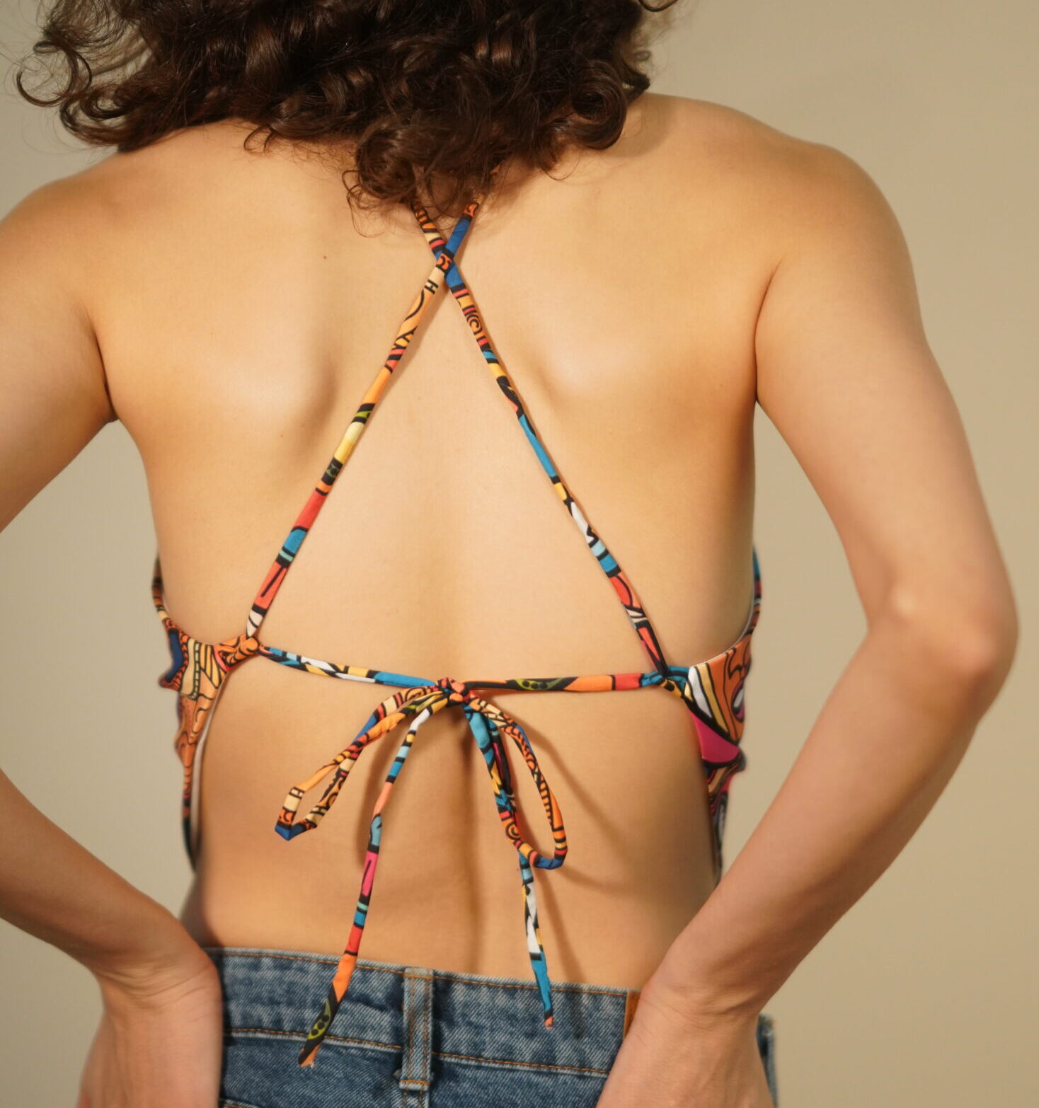 Perfect for everything from music festivals and rooftop brunches to spontaneous city adventures, the Confetti Top features a fully adjustable tie-back for a custom, comfortable fit up to 36″ bust. Its soft satin lining ensures comfort from day to night, while the cropped, asymmetric hem adds a modern edge.