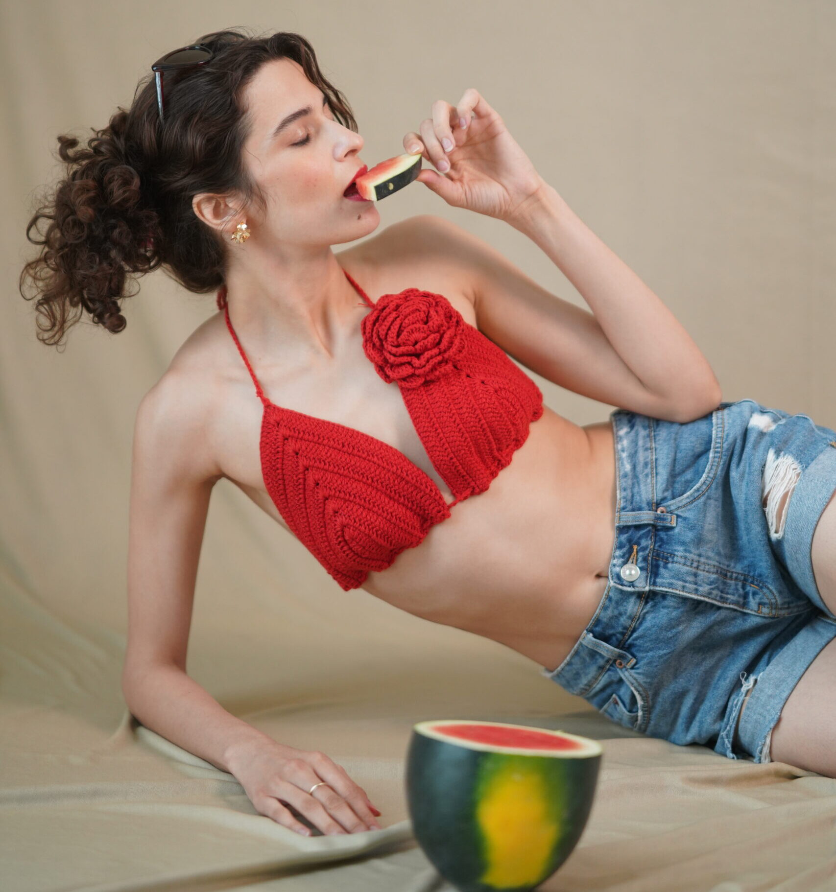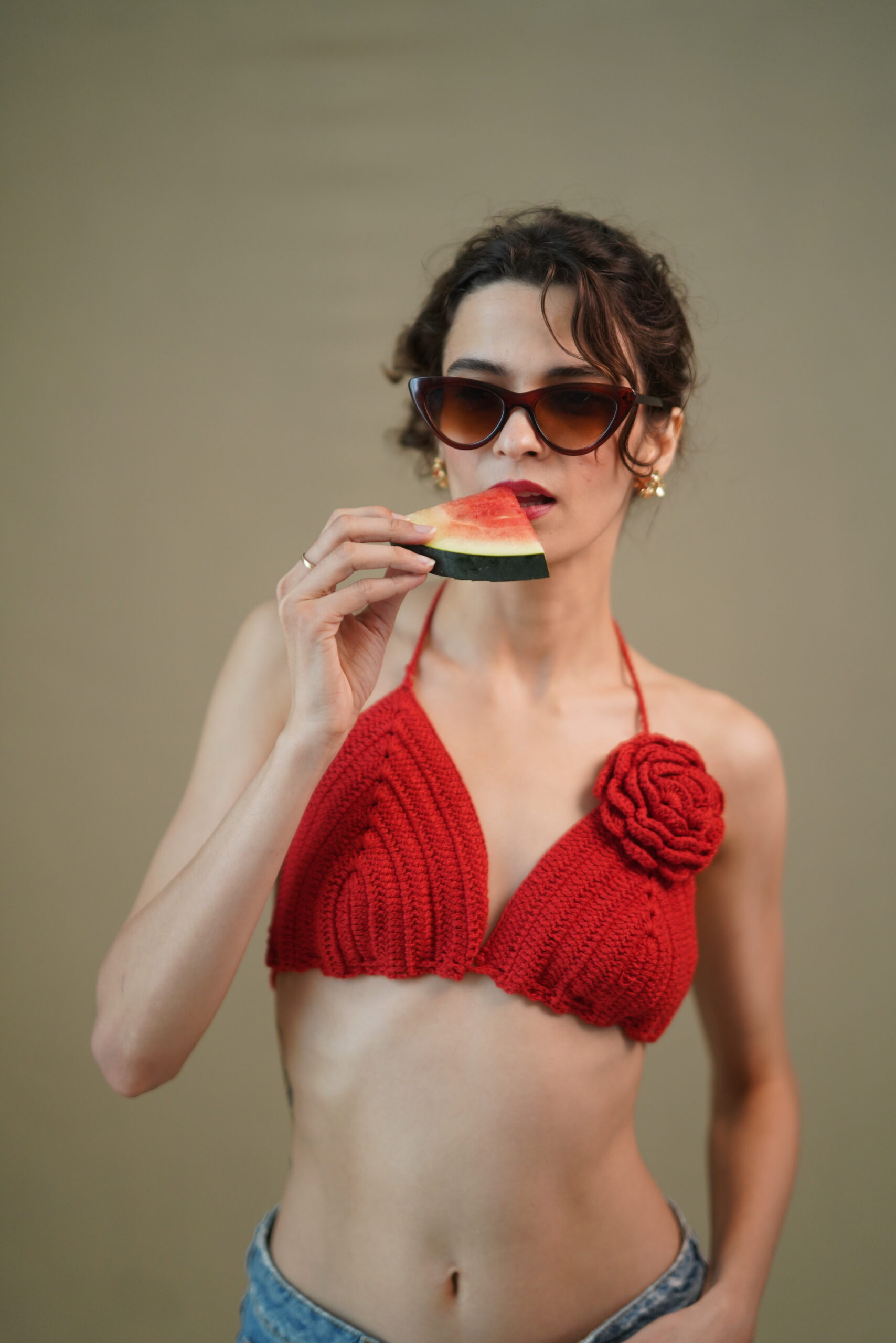 This crochet bralette, handcrafted with intentional stitches and a sculpted silhouette, it’s designed to celebrate skin, confidence, and slow fashion. The bold red hue commands attention, while the statement floral crochet detail adds just the right touch of romance and drama.